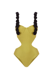 Su diseño, que combina un cut-out lateral con flores que se extienden delicadamente desde el tirante hasta el pecho, refleja el significado de Amal, que en árabe se traduce como "esperanza" o "deseo".Las flores, sutilmente distribuidas, añaden un toque romántico y fresco, mientras que el corte lateral otorga un aire de sensualidad sin perder la elegancia.