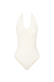 Sumérgete en el lujo y la elegancia con el bañador Oasis. Su drapeado delicado y el escote en V realzan la figura, ofreciendo una silueta sofisticada y femenina. En la espalda, una sola flor adorna el cuello, agregando un toque de sofisticación sutil, evocando la calma y belleza de un oasis escondido. Es la combinación ideal de confort y alta costura, transportándote a un lugar de relajación y belleza inigualable.