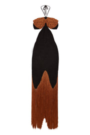 Vestido de crochet y flecos con motivos florales en el pecho