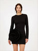 Vestido mini de tejido elástico. Su diseño minimalista se realza con una flor 3D en la cadera.